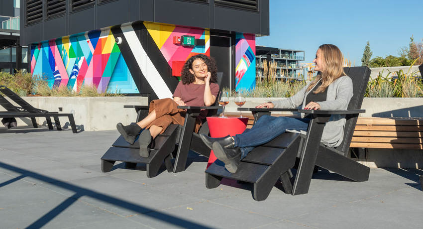 When the screen just gets a little too much and you want to break up the Monday-Friday routine – The 12th-floor rooftop patio offers panoramic views of the city, providing the perfect backdrop for inspiring your creativity or just taking a break and enjoying the scenery. You can even work outside in the fresh air, and build connections with your neighbours in the social lounge over a BBQ or the fire table.